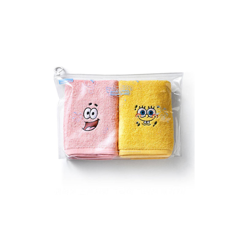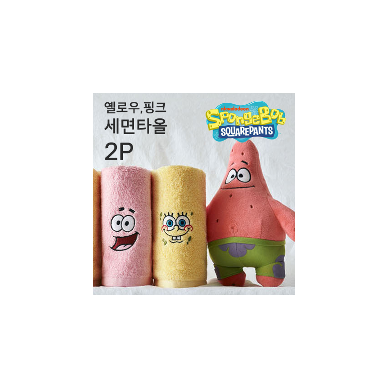 [국내생산] 스폰지밥&뚱이 캐릭터 컬러 수건 세트 2매 (150g)