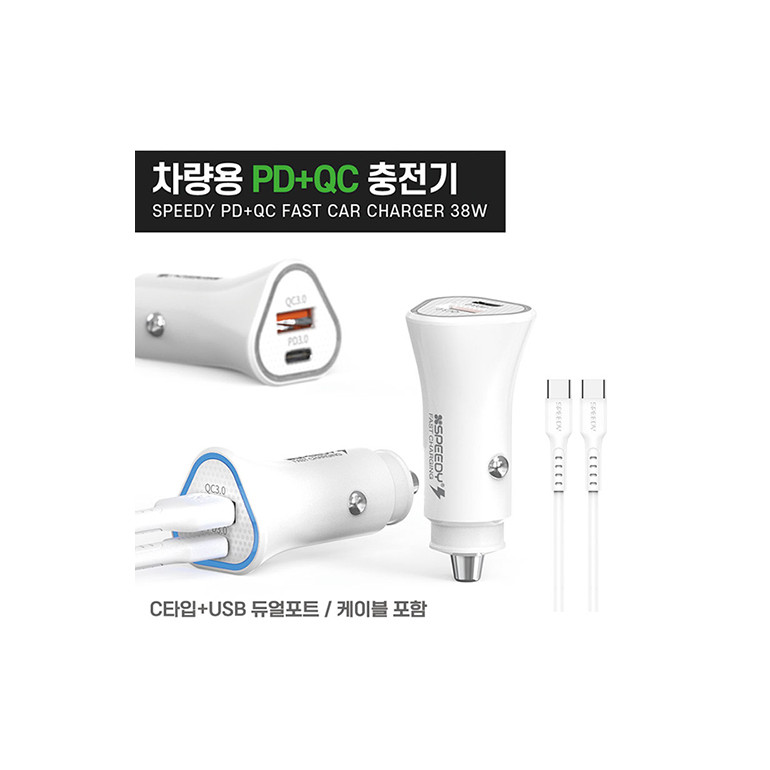 스피디 차량용 C타입+USB 듀얼포트 38W 고속충전기-케이블포함