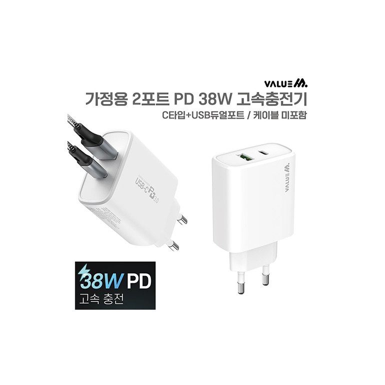 밸류엠 가정용 2포트 PD-38W 고속충전기-케이블미포함