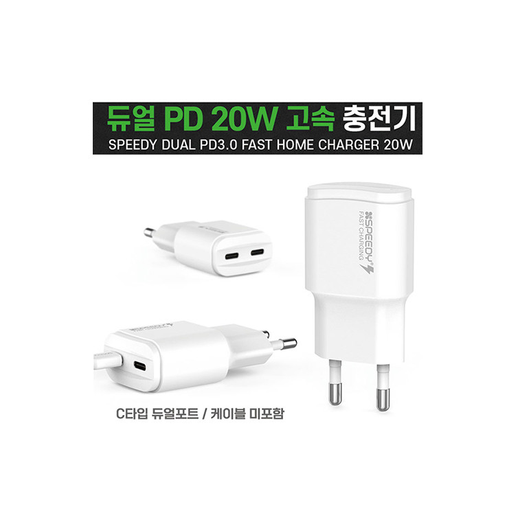 스피디-가정용 CTYPE 2포트 PD 20W고속충전기 케이블미포함