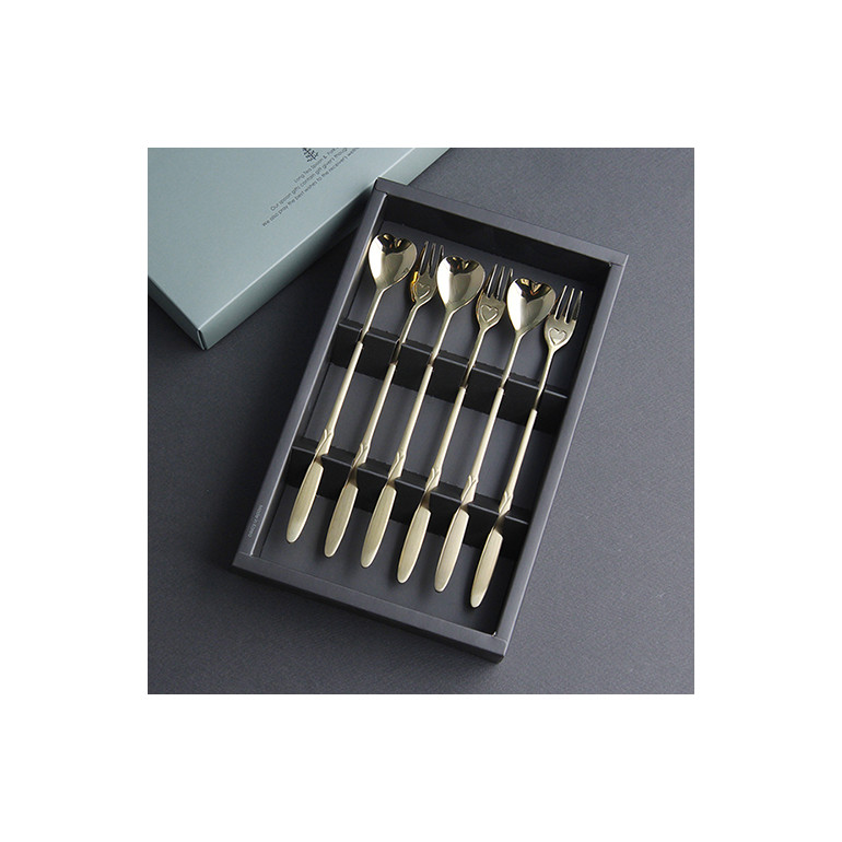 엔젤하트 골드 롱스푼롱포크 6P 커피스푼포크