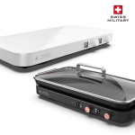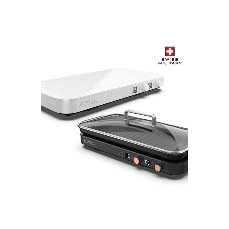 [스위스밀리터리] 슬림&와이드 2구 인덕션(LCD) + 인덕션전용 와이드 2구 그릴팬-블랙(스크레치 방지 패드 2개 포함)
