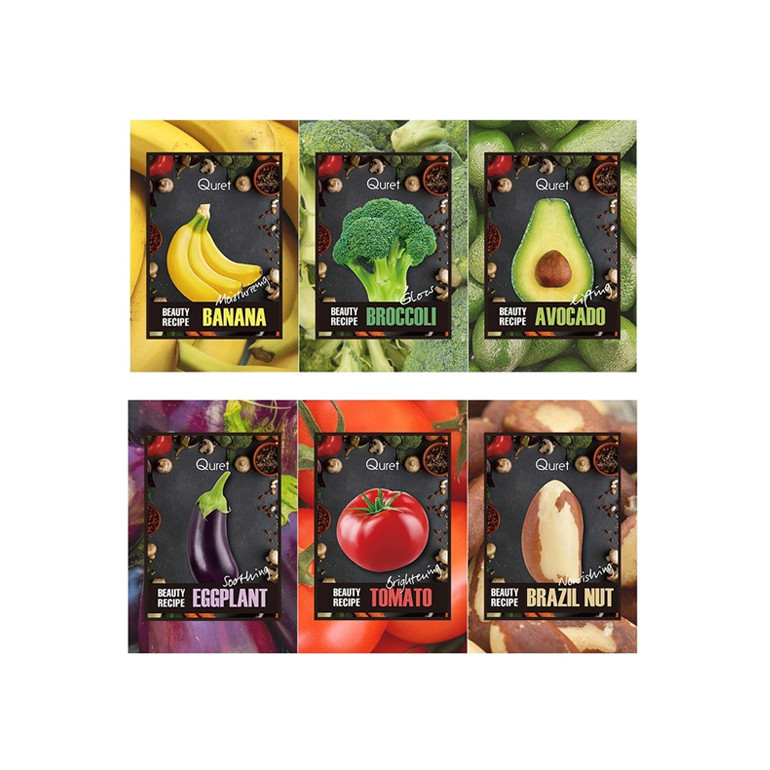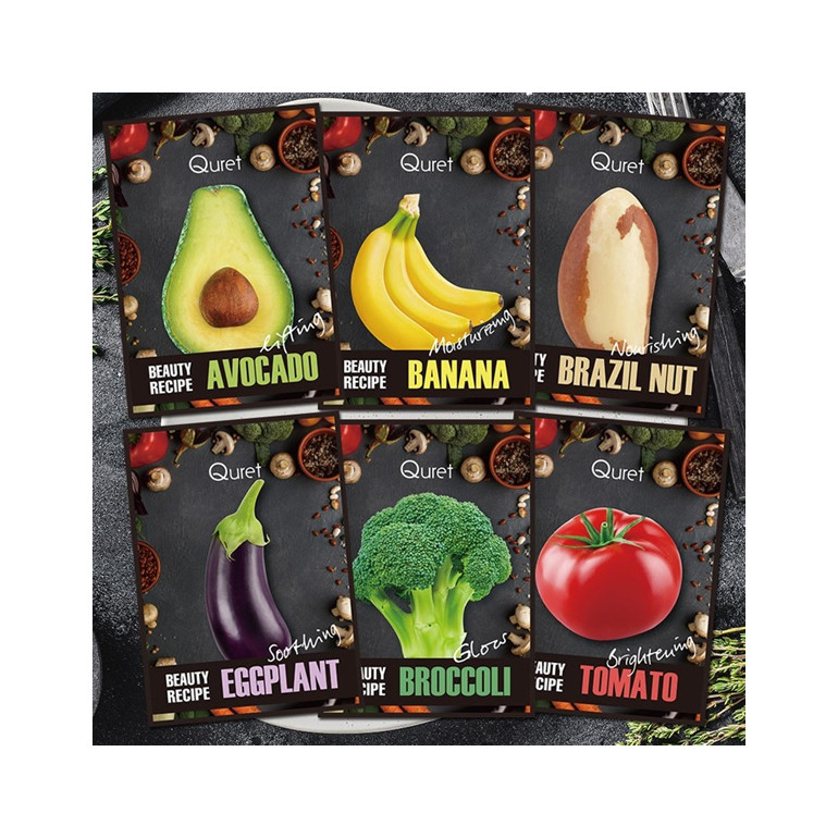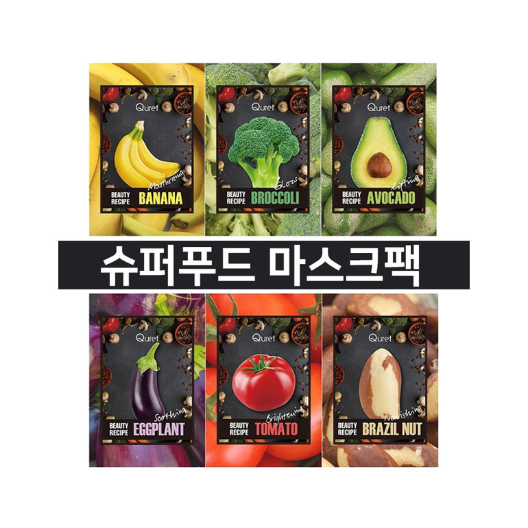 ad-15 뷰티 레시피 마스크팩(12매) / 아보카도,토마토,바나나,브라질넛,브로콜리,가지 각 2매입씩