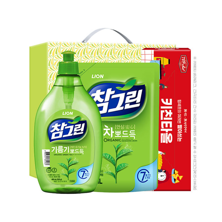 (유기농)참그린녹차500용기 녹차300리필 빨아쓰는키친타올(3종)