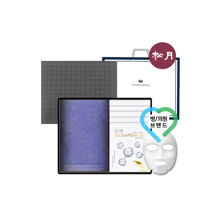 송월 퓨어 세트3 (호텔수건 160G 40수 1매 + 병의원 마스크팩 5매) + 세트박스 + 쇼핑백