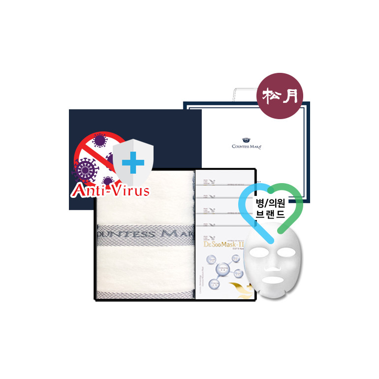 송월 케어데이 세트13 (뱀부얀 바스타올 250G 1매 + 병의원 마스크팩 5매) + 세트박스 + 쇼핑백