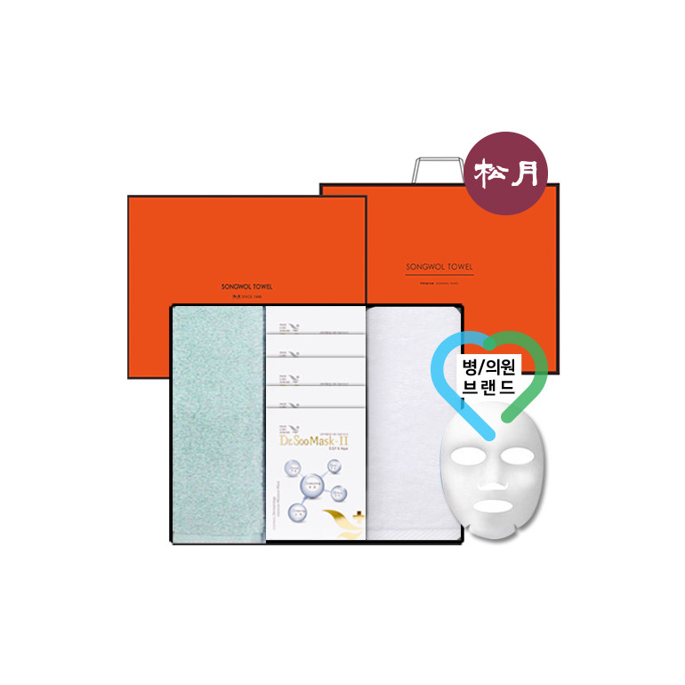 송월 케어데이 세트1 (호텔수건 130G 2매 + 병의원 마스크팩 5매) + 세트박스 + 쇼핑백
