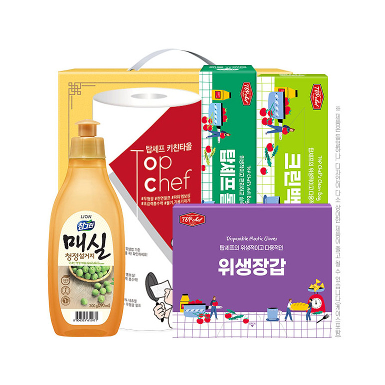 (친환경)참그린매실300용기 키친타올 롤백 크린백 정사각위생장갑(5종) 세트