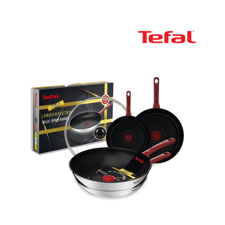 테팔 유니크 인덕션 프리미엄 프라이팬20cm+24cm+26cm+멀티팬28cm+유리뚜껑 CT1-UQFP202426W28G