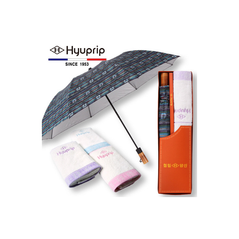 협립 2단 멀티실버 원목손 우산+눈꽃타월1P 세트