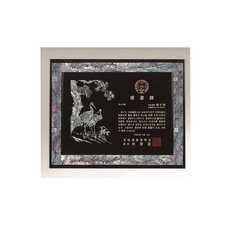 천연 진주 자개패 - 창살문 송학