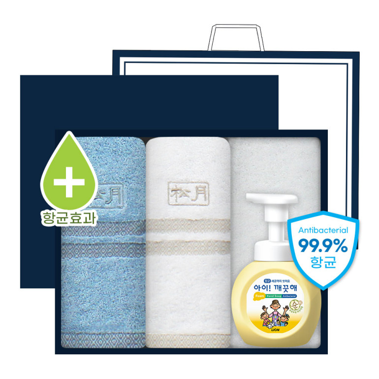 송월 완벽 항균 케어 3P 세트 (핸드워시 1개 + 노을40 타올 2매)