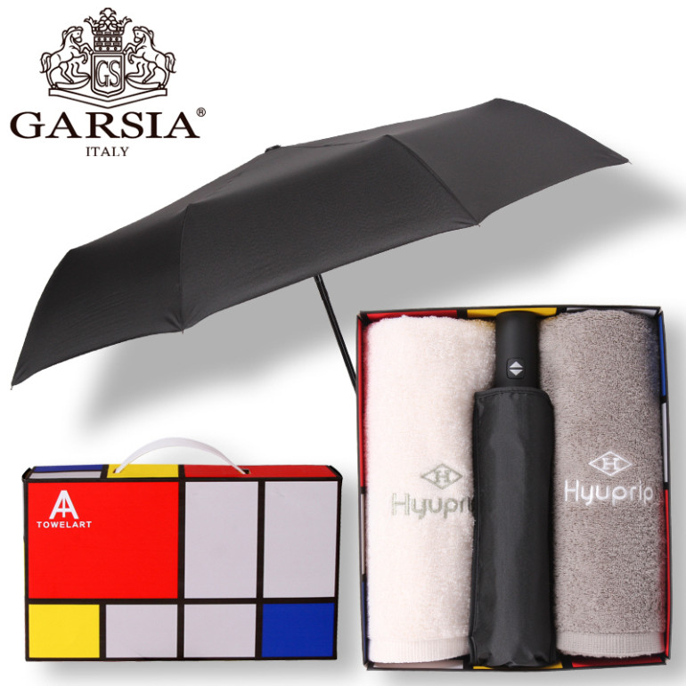 가르시아 3단베이직완전자동우산+호텔코마170타월2P-우산타월세트