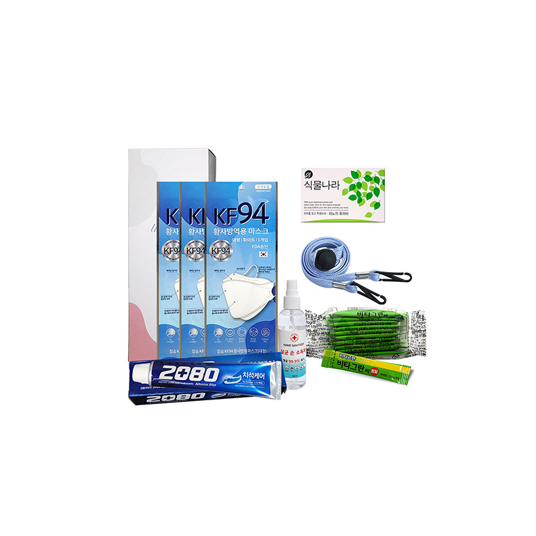 • 18종 방역 위생키트/KF94마스크/손소독제/치약/비누 등 방역물품