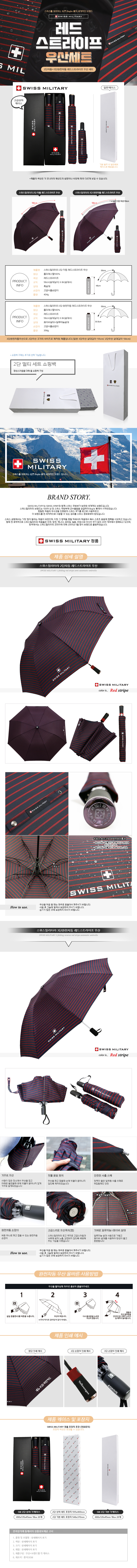 스위스밀리터리 2단자동/3단완자 레드스트라이프 우산세트