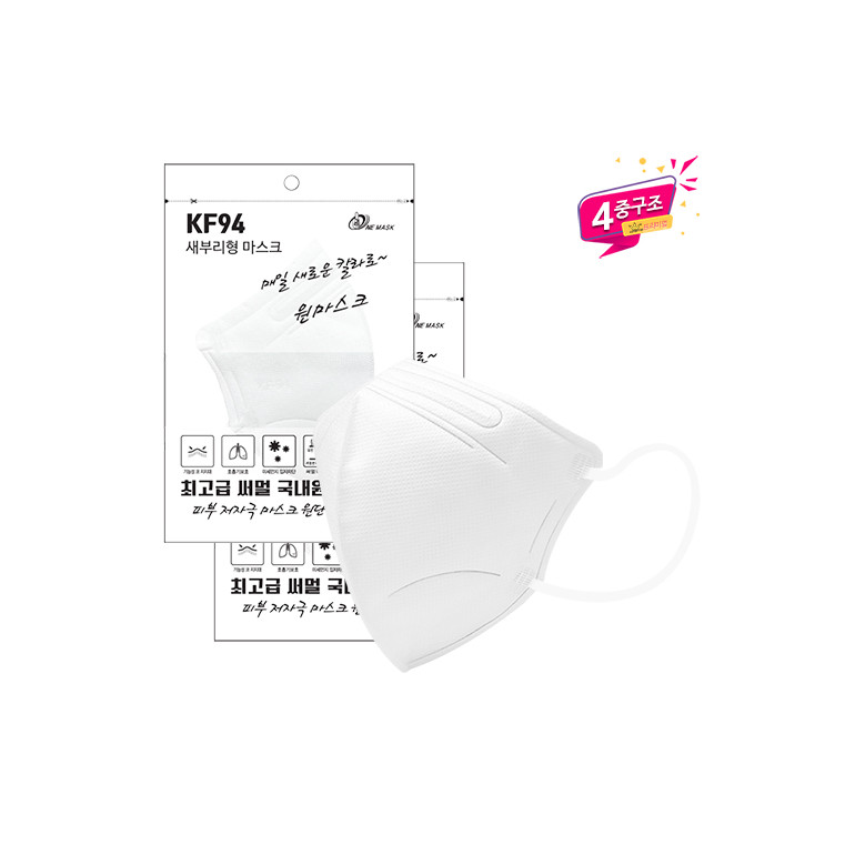 (파우치)KF94 새부리형 4중 화이트 마스크