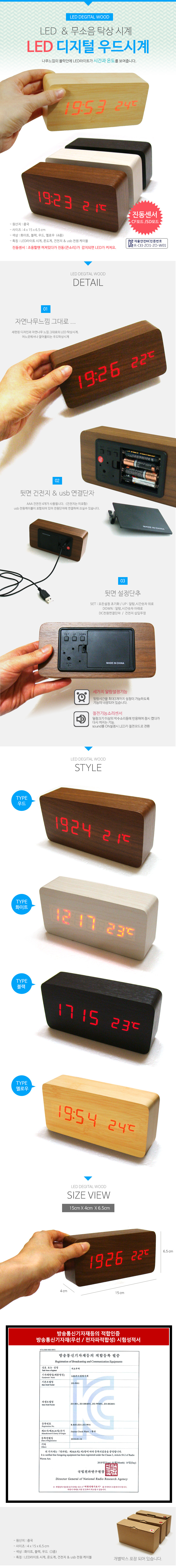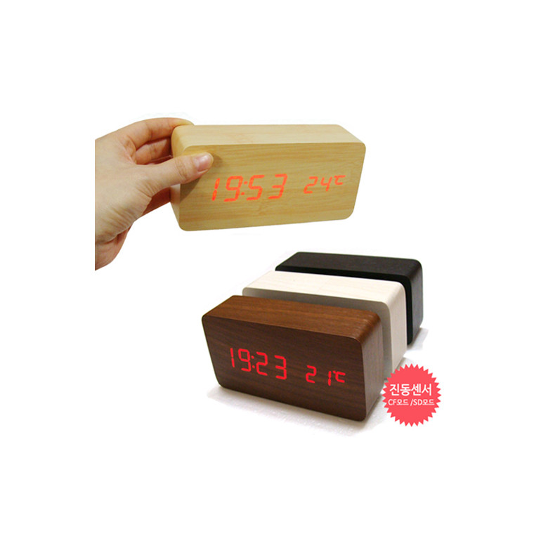 책상시계[LED디지털 우드시계-직사각]
