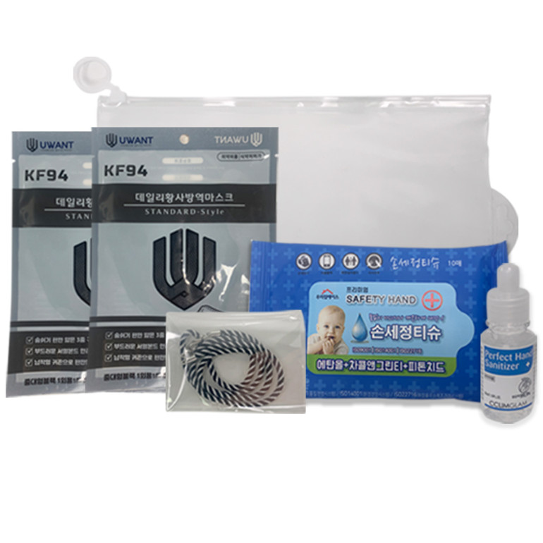 [방역키트]유원트 데일리 황사방역 마스크(KF94)+끌림글램 퍼펙트 손 소독겔(35ml)+손 세정티슈10매+ 마스크 스트랩+지퍼백