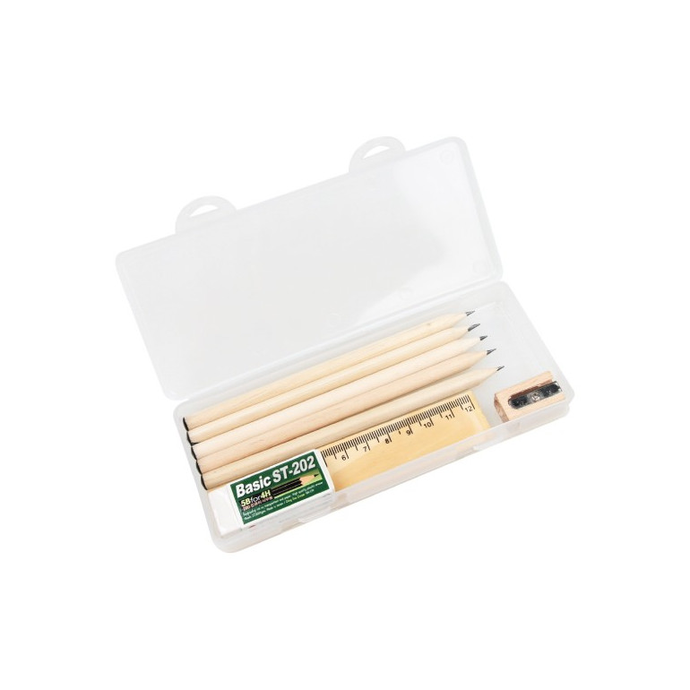 케이스,연필5p,나무자,지우개,연필깍이