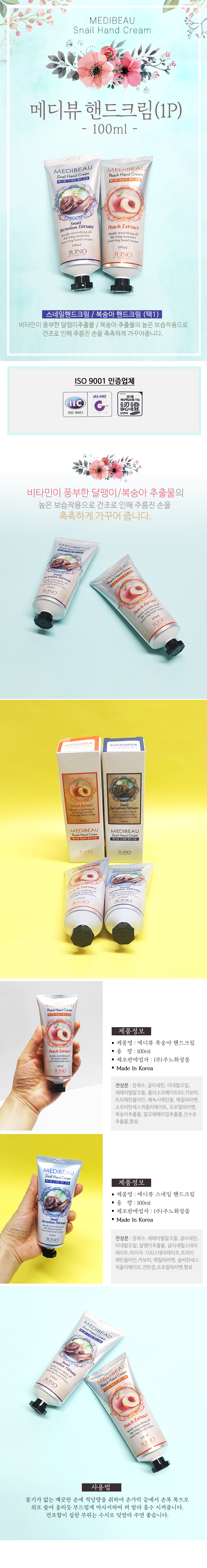 {메디뷰 핸드크림-1P}100ml/스네일/복숭아/고급케이스포장/국산