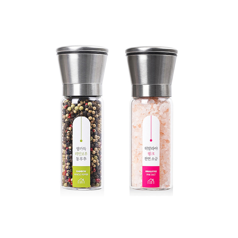 소금공장 스텐글라인더2조세트 레인보우통후추+핑크솔트