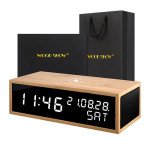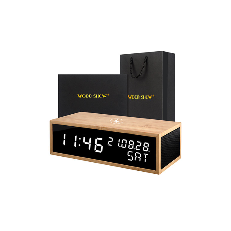우드쇼 R1313 블루투스스피커,무선충전 리얼우드 LED시계_흑경 아답터포함 고급패키지