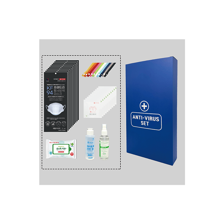 [K방역세트] 프랜드리황사방역마스크(KF94)10매+손소독티슈1개+알콜스왑10매+마스크목걸이1개+손소독겔1개+손소독스프레이1개