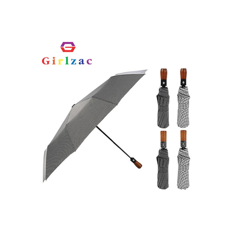 고급 체크우드손잡이 3단완전자동우산