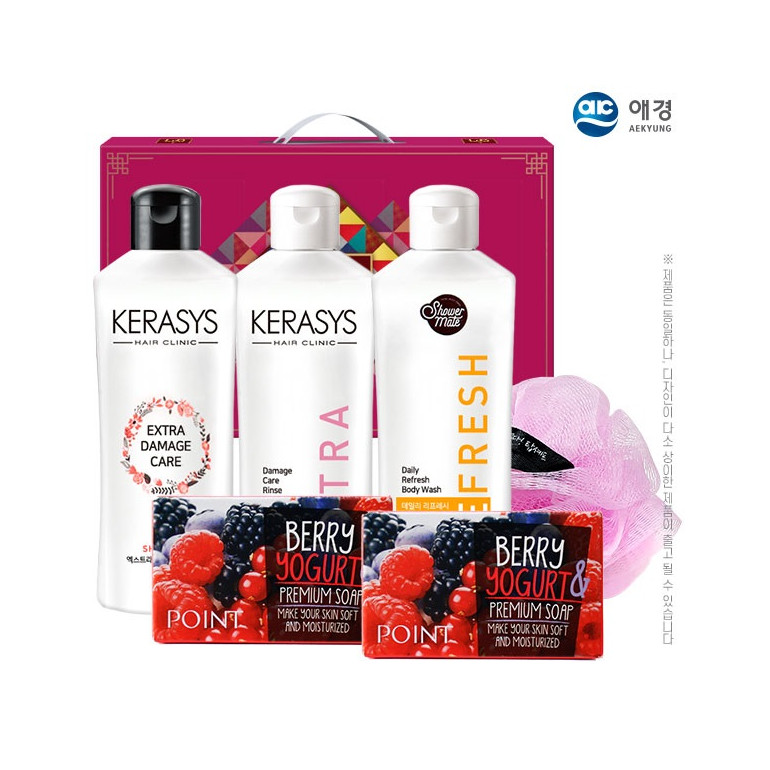 애경 케라시스샴푸180용기/린스180용기/샤워메이트/포인트베리비누2P/샤워볼(6종)
