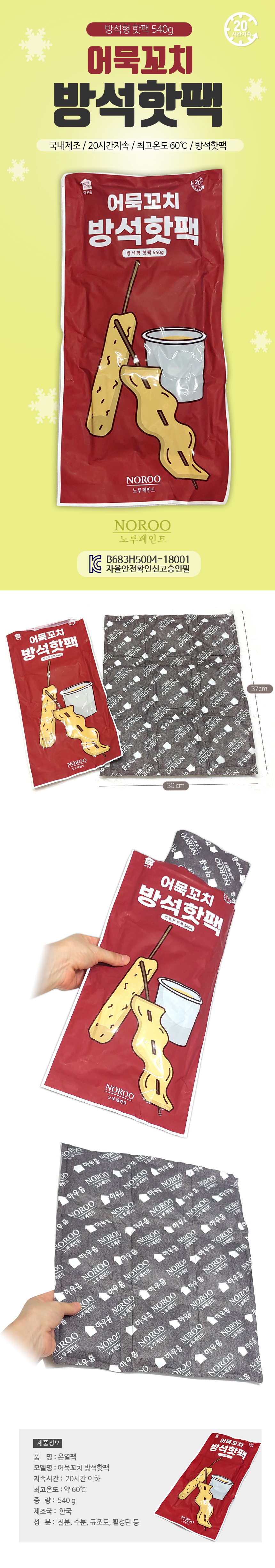 {어묵꼬치 방석형핫팩-540g}국산핫팩/방석핫팩/KC