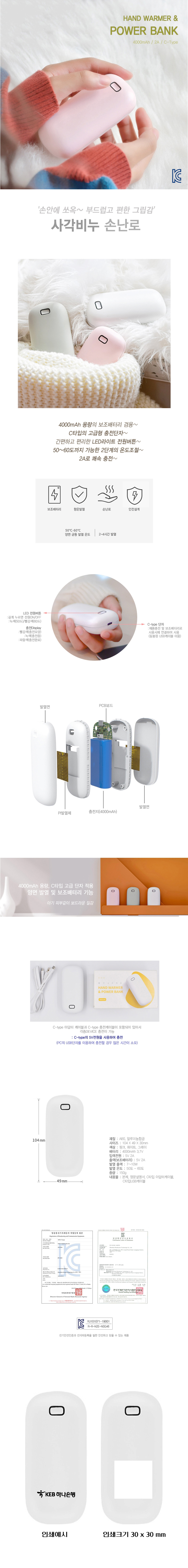 USB충전 사각비누 휴대용 손난로 대용량 보조배터리 4000mAh