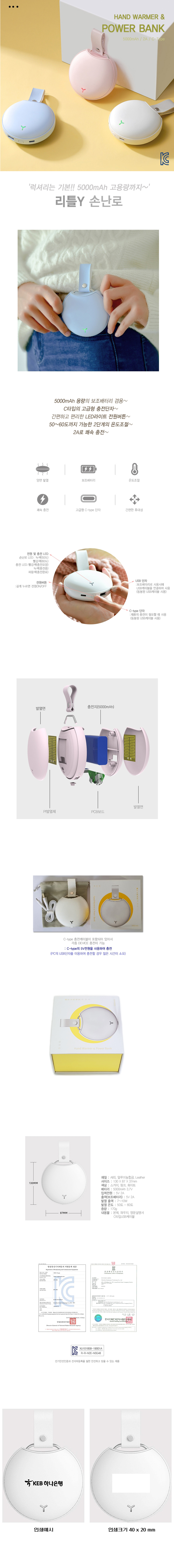USB충전 리틀Y원형 휴대용 손난로 대용량 보조배터리 5000mAh