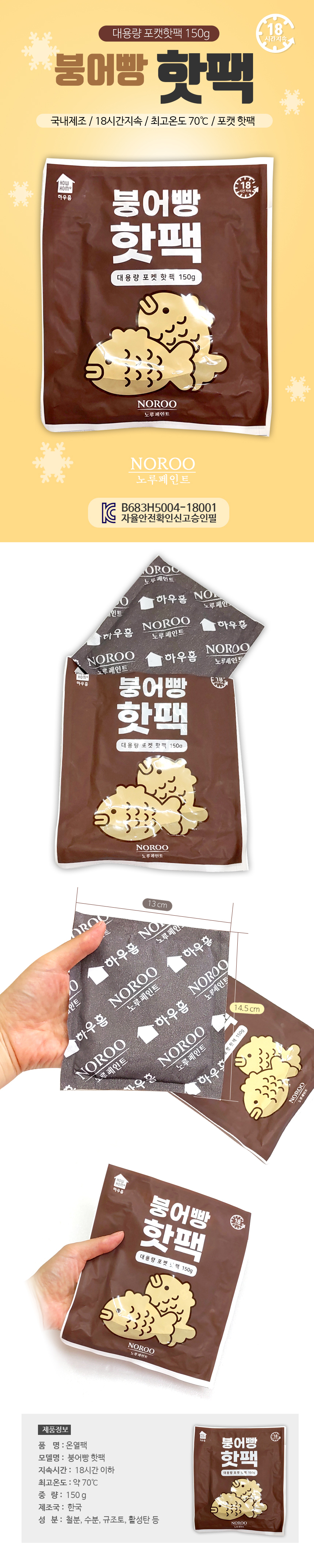 {붕어빵 핫팩}국산핫팩/손난로/포켓형핫팩/KC인증/정확한 용량/150g
