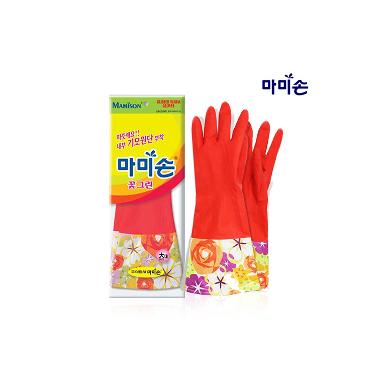 엄마손 꽃그린 기모 고무장갑(대형)/ 김장용 기모고무장갑 대형