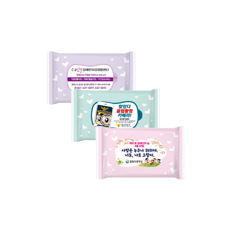 10매 하트3종 무광(색상섞임) 물티슈