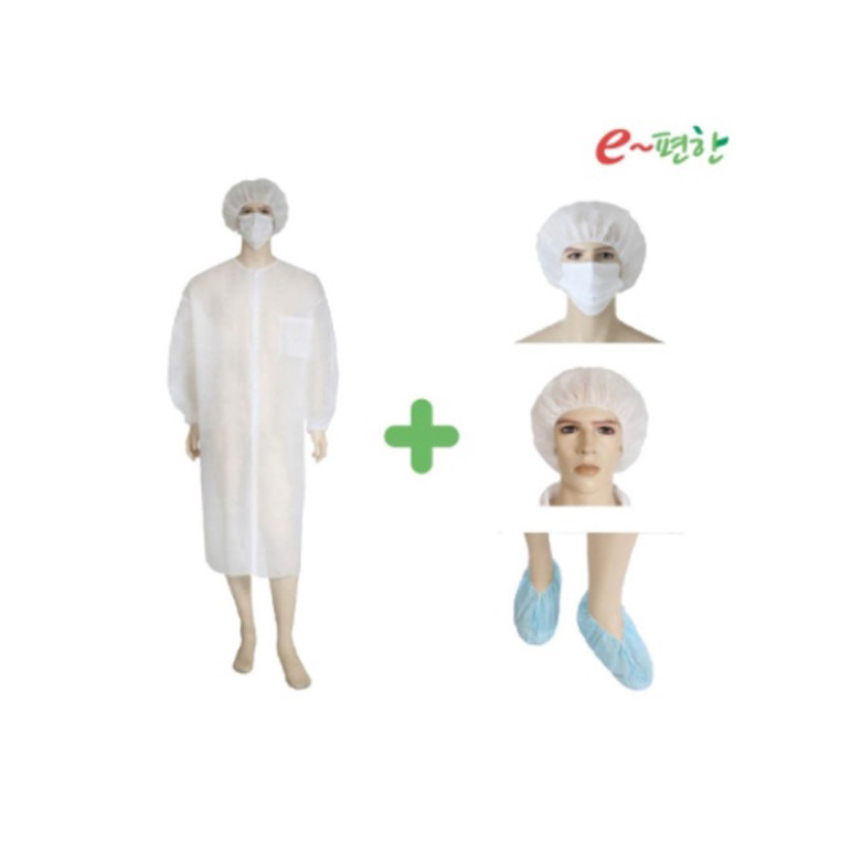 가운+마스크+덧신+모자
