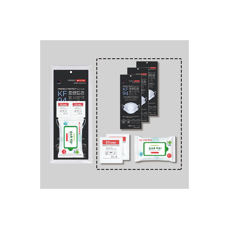[K방역세트] 프랜드리황사방역마스크(KF94)3매+손소독티슈(10장)1개+알콜스왑2매