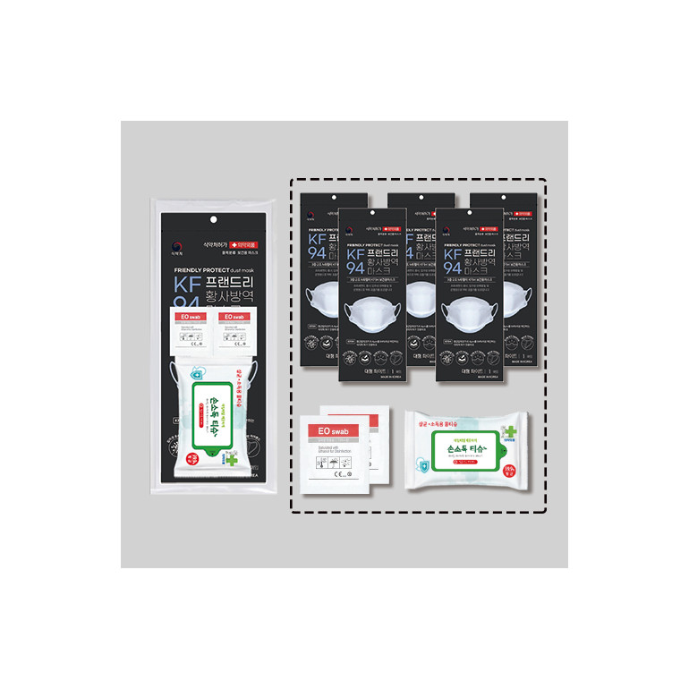 [K방역세트] 프랜드리황사방역마스크(KF94)5매+손소독티슈(10장)1개+알콜스왑2매