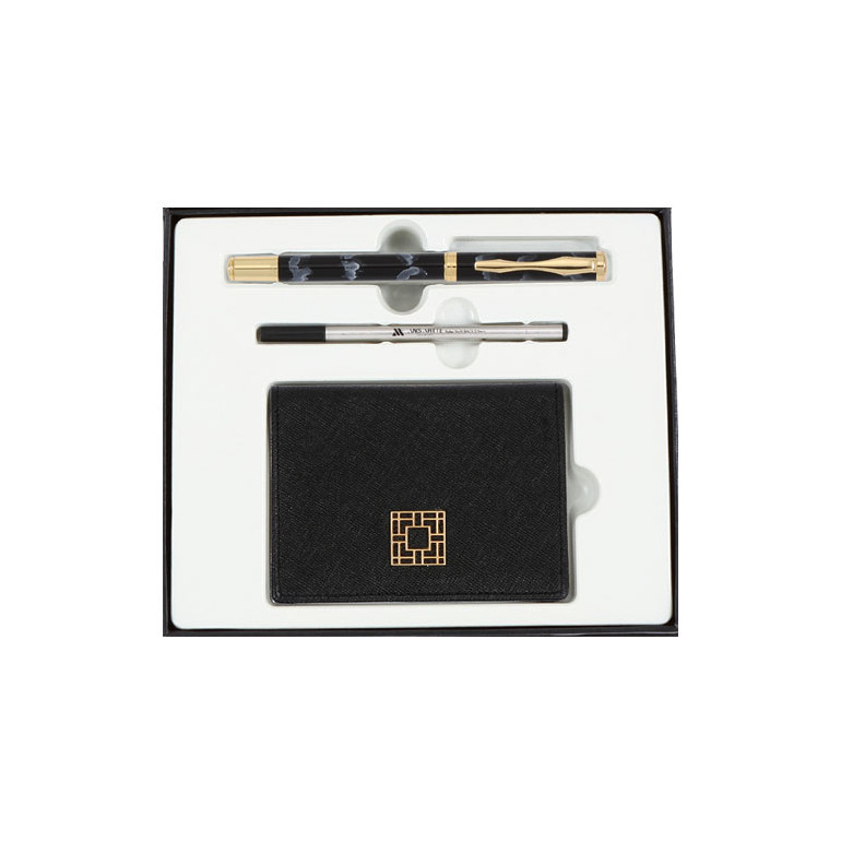 카데스금장수성펜+리필심+완자문소가죽명함지갑