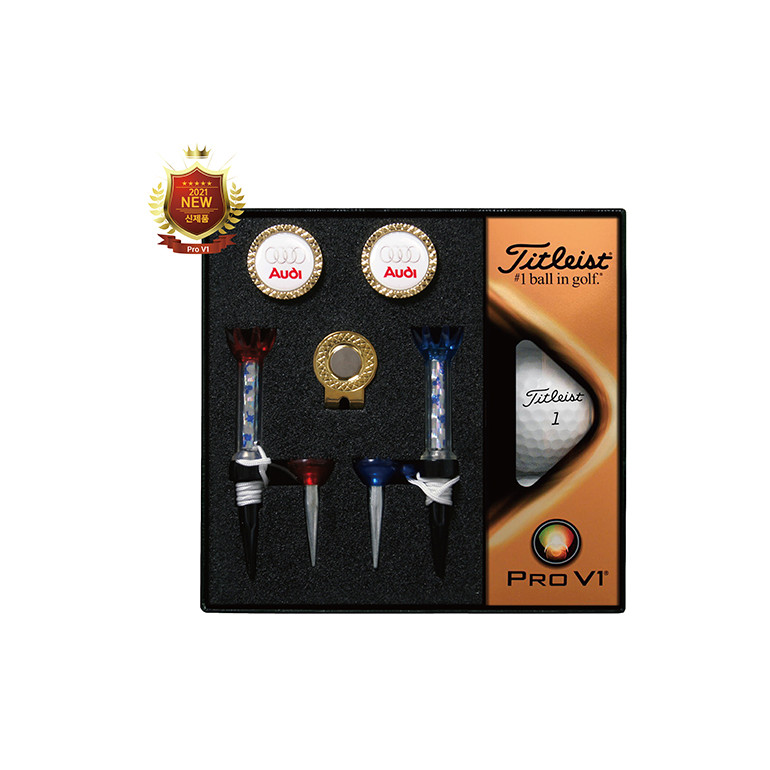 타이틀리스트 Pro V1 골프볼+볼마커(골드)+자석티(2) 세트