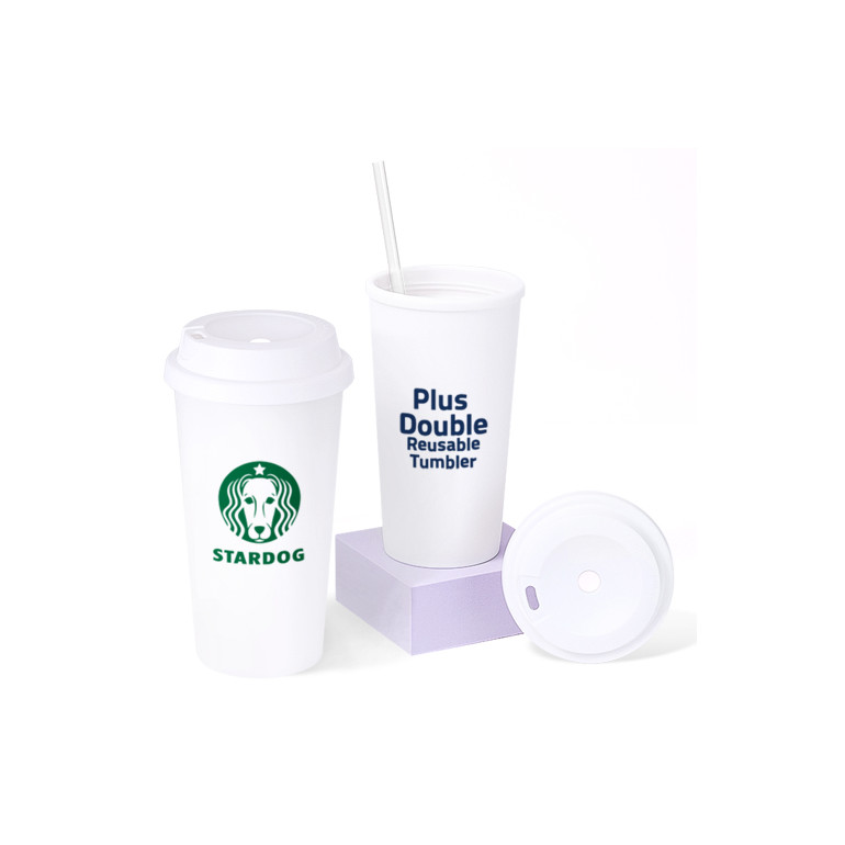 플러스 이중 리유저블 텀블러 450ml / 풀칼라인쇄 가능/이중텀블러/오보틀/커피텀블러/콜드컵