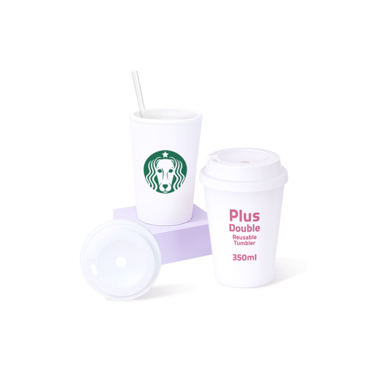 플러스 이중 리유저블 텀블러 350ml / 풀칼라인쇄 가능/이중텀블러/오보틀/커피텀블러/콜드컵