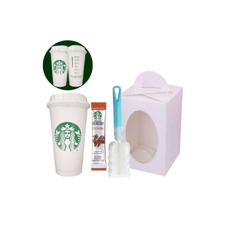 리유저블 텀블러 473ml 1P + 비아커피1ct+세척솔1P+ 화이트손잡이박스