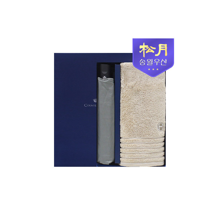 송월타올 호텔컬렉션 필라라인40 타올 + 카운테스마라 3단 큐브완자 우산 2p 세트