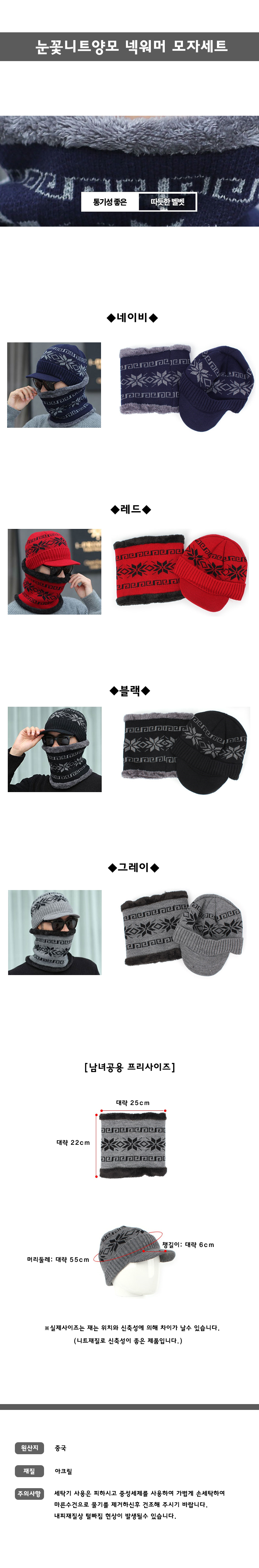 눈꽃 니트양모 넥워머 방한모자세트/기모넥워머.안감융털모자.목도리