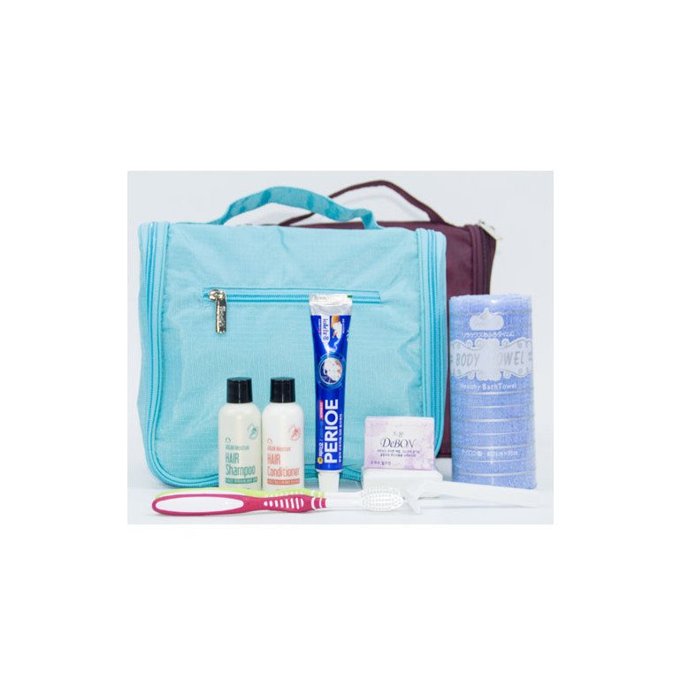 [트레블여행용세트64호] (아르간샴푸샴푸+린스or바디+치약50g+긴칫솔2ea+비누+비누곽+면도기+샤워타올)+트레블파우치