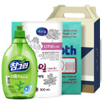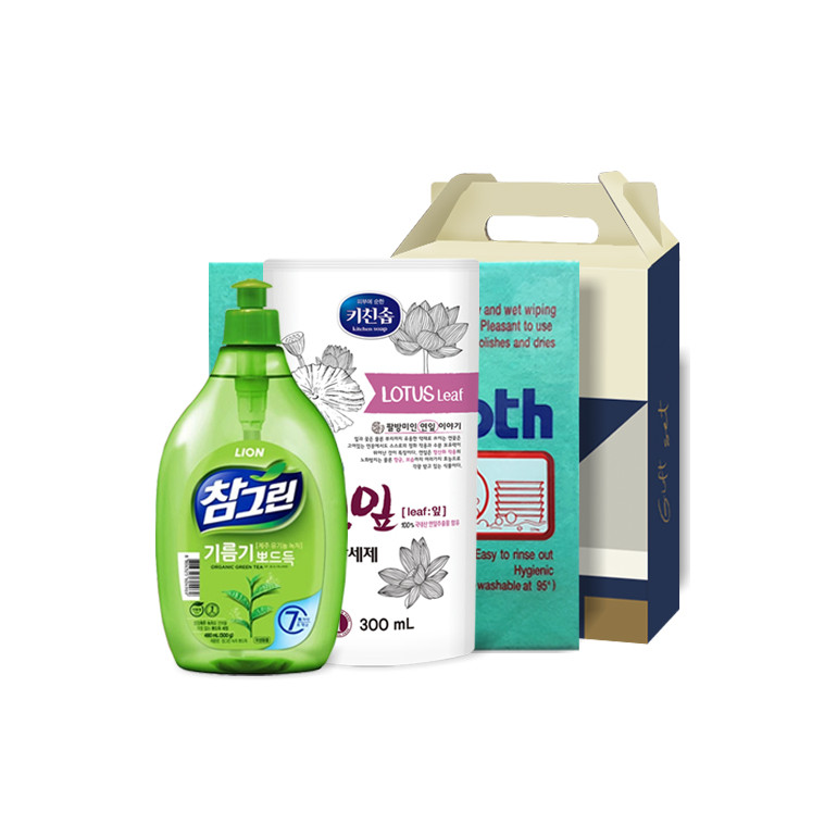 LION 참그린 녹차 뽀드득 용기 500g + 무궁화 키친솝 연잎 주방세제 리필 300ml + 독일칼라행주 [102-212491]