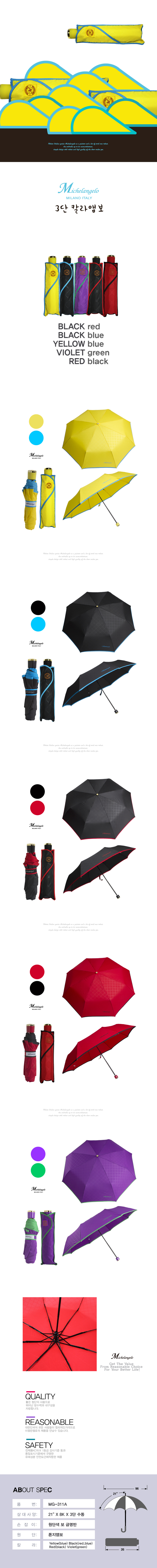 미켈란젤로 3단폰지칼라엠보/3단우산.3단수동우산
