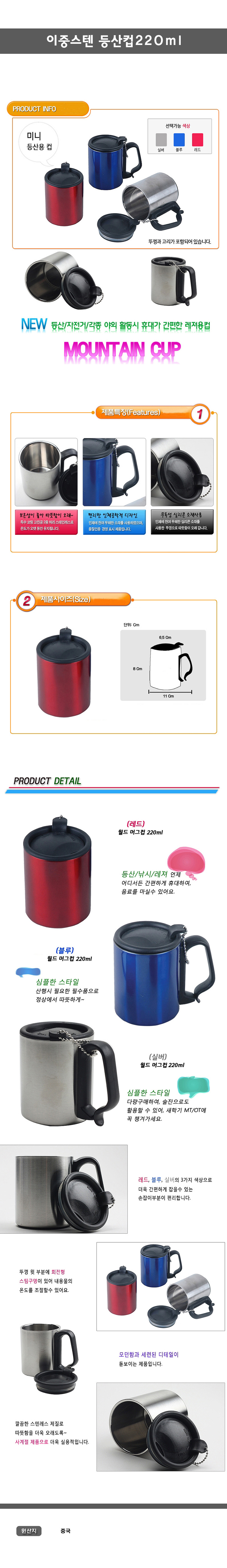 이중스텐 등산컵220ml/머그컵.캠핑컵.스텐컵