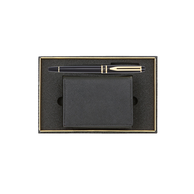 [볼펜세트/명합지갑세트] 워터펜블랙수성+소가죽명함지갑(사피아노)